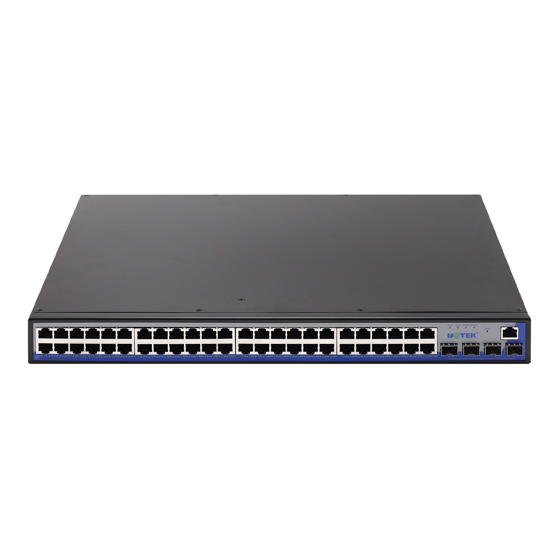 UT-63448GC系列是款高性能,高性价比的网管型万兆以太网三层交换机。该交换机可提供48路千兆以太网口,4路万兆SFP+接口,不仅增加了带宽,提高了网络数据的通讯,而且非常适合大规模工业网络的应用。该系列产品支持多种二层软件特性(端口镜像、VLAN、端口汇聚、IGMP Snooping、QoS、STP/RSTP/MSTP等)和基本三层路由协议(静态路由/RIP/OSPFIVRRP),为用户提供了完善的解决方案,更好的为工厂自动化,智能交通,视频监控等工业应用领域构建大型局域网络提供更多选择方案。