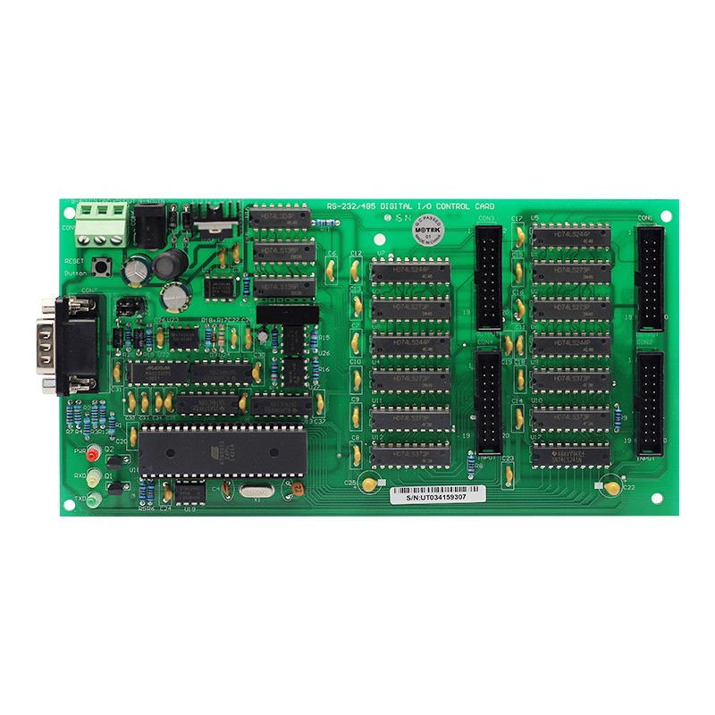 PCL-88D数据并行输入输出(I/O)控制卡是8位32通道数据输入,8位32通道数据输出,所有数据输入输出是与TTL/DTL电平相容的,每个数据输入或输出通道相类似若干个电脑接口,采用外置的RS-232或RS-485光电隔离通信接口,非常容易地使用程序来控制那些输入/输出口的功能,再加上简单的驱动线路来驱动外部的设备(例如: 气动元件,外部继电器开关,电眼状态,遥控接口仪器,模数数模转换器,EEPROM电可擦除存储器读写,步进电机控制等等)。