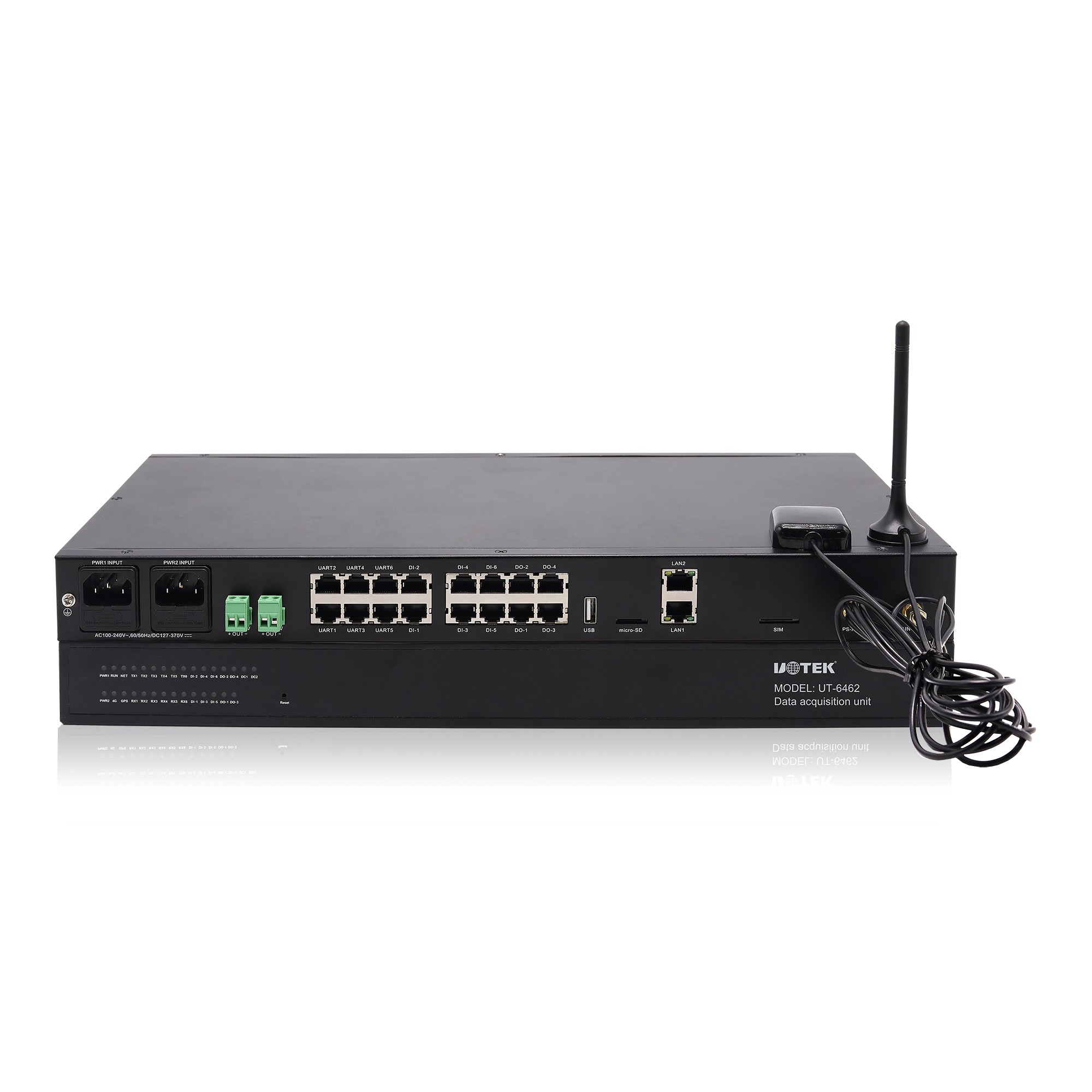 UT-6462是一款数据通信单元,集应用处理器,无线数据通信和嵌入式操作系统于一身,面向智能硬件,工业物联网应用设计。采用工业级高性能32位CORTEX-A8构架处理器,采用嵌入式linux操作系统为软件支撑平台。 支持4G LTE 无线网络通信,支持双以太网接口,串行数据通信,支持DI、DO控制输入输出功能;可以实现TCP/IP到RS-485/232的数据转换和采集功能。具备抗干扰和浪涌保护能力,能有效的保障产品的可靠性和稳定性,可广泛应用于物联网,IDC机房,安防监控,数据通信、工业控制,数据采集系统等领域。